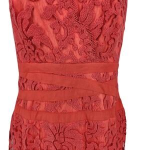 Tadashi Shoji Red Coral Chantilly Lace Sleeveless Sheath Cocktail Dress Size 8