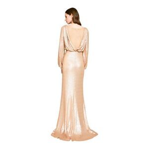 Tadashi Shoji Revin Long-Sleeve Gold Sequin Maxi Gown, 2/4