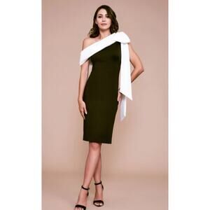 Tadashi Shoji Rigel Black White One Shoulder Dress NWT Formal Cocktail size L