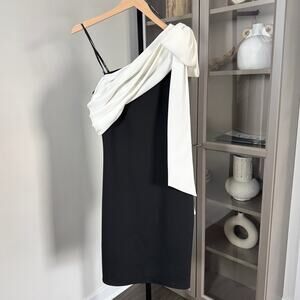 Tadashi Shoji Rigel Neoprene White Bow Dress M Draping Off The Shoulder Sleeve