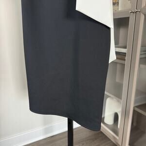 TADASHI SHOJI RIGEL BLACK NEOPRENE WHITE SCULPTED BOW OFF SHOULDER DRESS