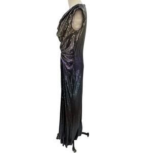 Tadashi Shoji Sequin Gown Long Ruched Metallic Ombre Gold Purple Size 12