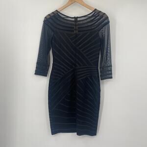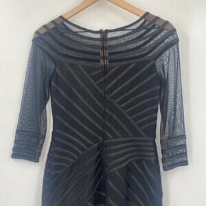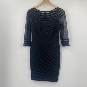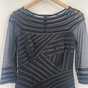 Tadashi Shoji Sheer Illusion Cocktail Dress Bandage Ponte Knit Mesh Black XS