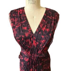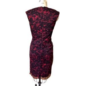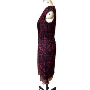 Tadashi Shoji Silk Chiffon Red & Black Print Sheath Dress Size 6