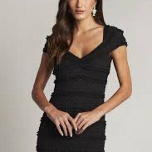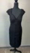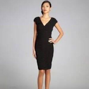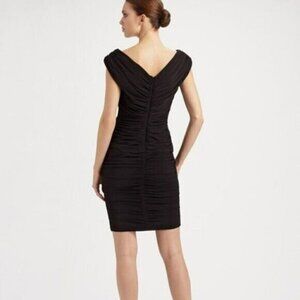 Tadashi Collection Black Ruched Silk Cocktail Dress Cap Sleeves Sweetheart Neckline V-Back Little Black Midi Mini Dress Size 8