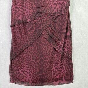 Elevate your party look with this stunning Tadashi Shoji dress, perfect for weddings, cocktail parties, and formal events. The dress features a bold maroon and black animal print, with an asymmetrical neckline. The dress is made of luxurious silk with a knee-length bodycon sheath style. The dress boasts unique features such as an asymmetrical straps, ruched details, and a lining to enhance the dress's shape. The dress is available in size 6 for women. The dress is ideal for women who love classy and sexy dresses.