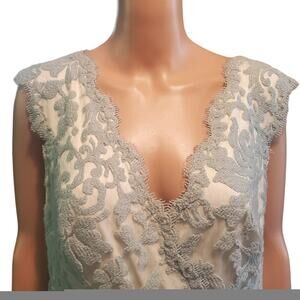 Tadashi Shoji Size 14 Seafoam Green Crossover Bodace Banded Floral Lace Overlay Dress