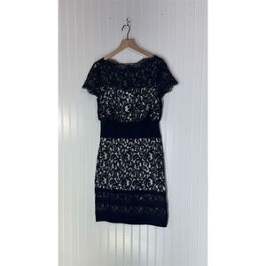 TadashiShoji #LaceDress #CocktailDress #EveningWear #SheathDress #BlackLace #WeddingGuest #FormalFashion #VintageVibes #DepopDress #PoshStyle #PartyDress #Size8Style