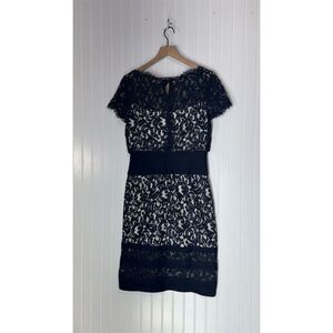 Tadashi Shoji Size 8 Navy Blue Lace Sheath Cocktail Dress Lined
