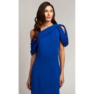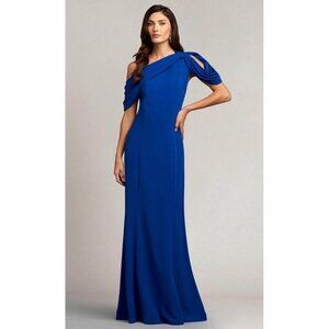 Tadashi Shoji Size XL Royal Blue One-Shoulder Bow Detail Crepe Maxi Gown Dress
