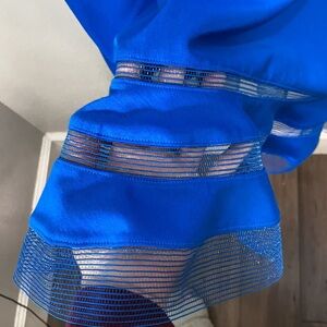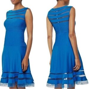 Tadashi Shoji Sleeveless Illusion Mesh Stripe Fit & Flare Jersey Dress Blue