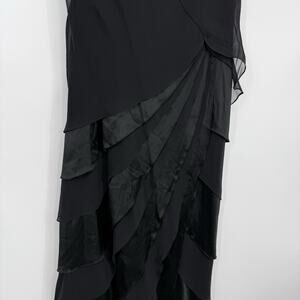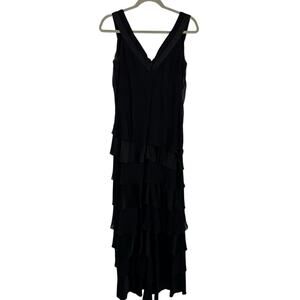 Tadashi Shoji Sleeveless Layered Silk Maxi Dress size US 10 UK 12 Black Event