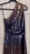 A light-capturing sequin ombré glitters like liquified jewels on this figure-skimming, one-shoulder gown. NWT