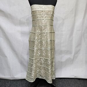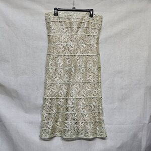 Tadashi Shoji Strapless Pale Green Floral Lace Knee Length Dress Size 14