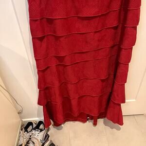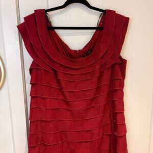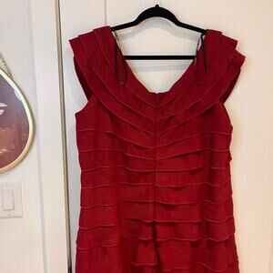 Tadashi Shoji Too Burgundy Tiered Maxi Cocktail Gown Sz 22Q