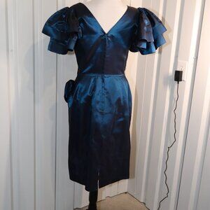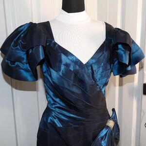 Tadashi Shoji Vintage 1980's Iridescent Blue Cocktail Dress Size 12 Knee Length