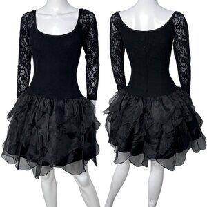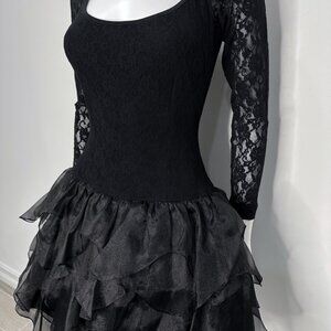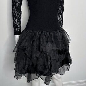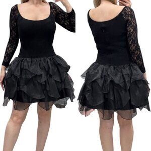 Tadashi Shoji Vintage Drop Waist Scoop Neck Lace Detail Mini Dress Womens Size S