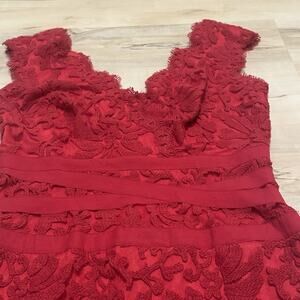 Tadashi Shoji Women 8 Dress V-Neck Sleeveless Lace Overlay Sheath Red