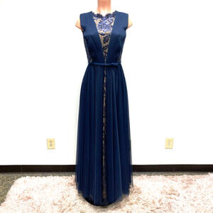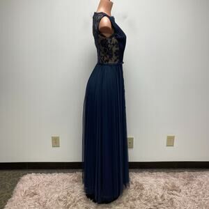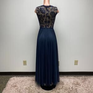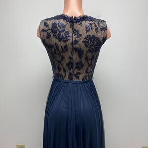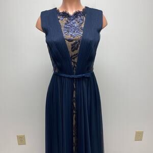 Tadashi Shoji Womens Navy Blue Sequin Lace Floral Pleated Planel Abena Gown 6
