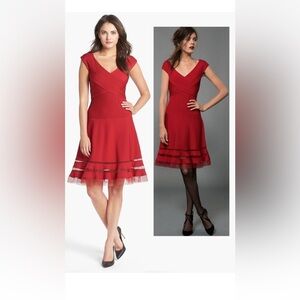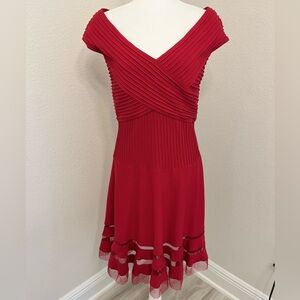 Tadashi Shoji Womens Red Cap Pintuck Jersey Fit & Flare Cocktail Party Dress
