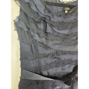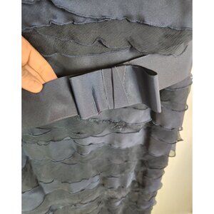 Tadashi Shoji Women's Sz.10 Navy Ruffle Silk Tiered Maxi Belted Cocktail Dress