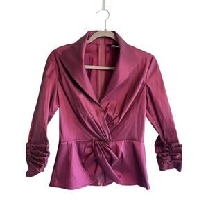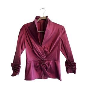 Tadashi Shoji Wrap Front Evening Formal Blouse Magenta Wine Dramatic size 8