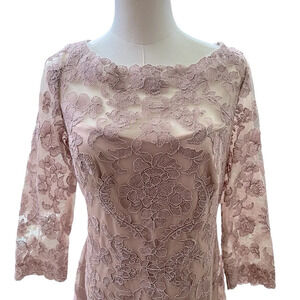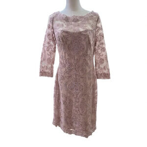 Tadashi Shoji Yosamu Dress 3/4 Sleeve Dusty Rose Lace Cocktail Dress Size 12