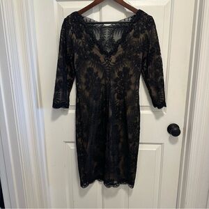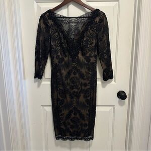 Tadashi Shoji Zuri Black Lace Illusion Sheath Dress Size 4
