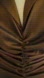 Tadashi Shoji brown gown with metallic sheen | size 4. Long sleeve upper with ruching & pleated details and a collar/ blazer neckline. Smooth skirt with slight train. Diamond look cuff links. Zips closed. In excellent condition aside from very small scuff mark on the right collar. See photos for details. Measurements are approximate: 54 inches in length, pit to pit 17 inches, Sleeve 19 inches in length.