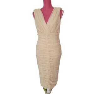 Tadashi Shoji designer dress party Vintage 90s Silk Ruched Bodycon Size 12