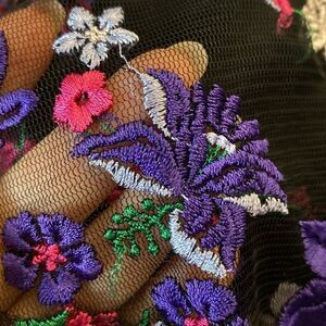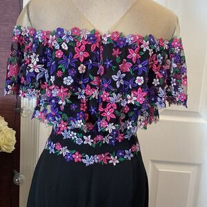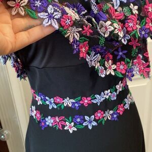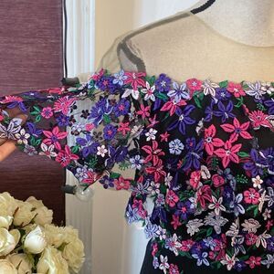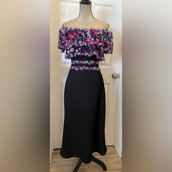 Tadashi Shoji mesh/embroidered top midi dress, S