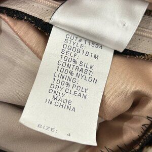 Tadashi Silk Dress Leopard Print Low V Back Ruched Waist Black Lace Lined Size 4