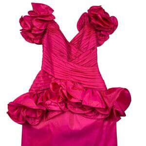 Tadashi Vintage 80's Ruched Ruffle Structured Statement Special Occasion Dress Women's Size 6.