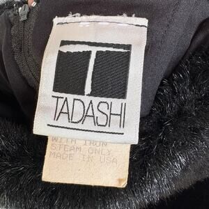 Tadashi Vintage Black Velvet Strapless Top Faux Fur Trim Winter Formal Size 4