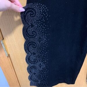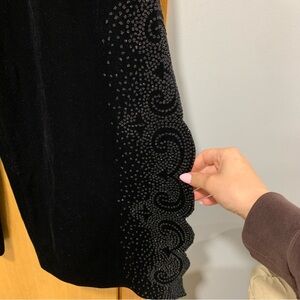 Tadashi velvet pants in excellent condition. I just noticed one of the little groups of beads is missing, but it isn’t noticeable. Please see photos.