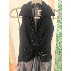 Tadashi Womens Black Velvet Collared Sleeveless Dress 4