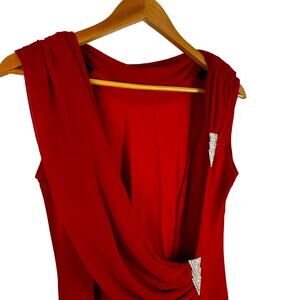 Tadashi Womens Red Cowl Neck Open Back Sleeveless Bodycon Long Dress Size S