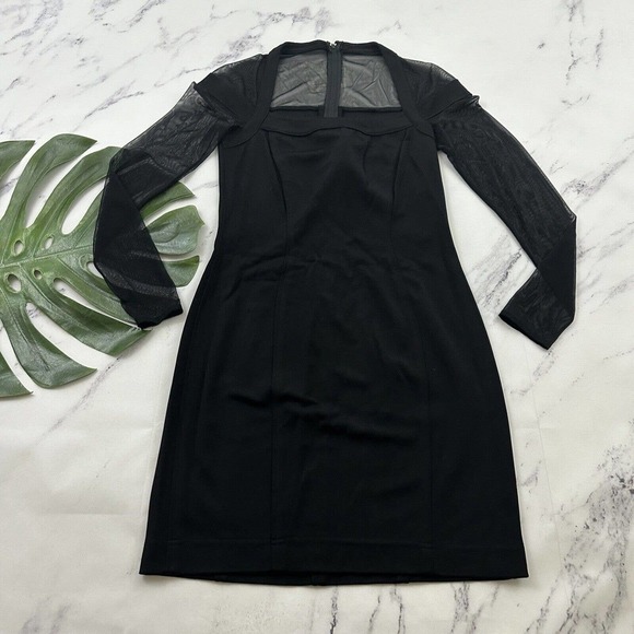 Tadashi Womens Vintage Mini Dress Size M New Black Mesh Sleeve Sheath Cocktail