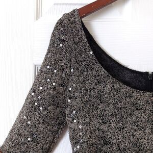 Tadashi Y2K Vintage Sequined Metallic Tinsel Knit Scoop Neck Quarter Sleeve Top
