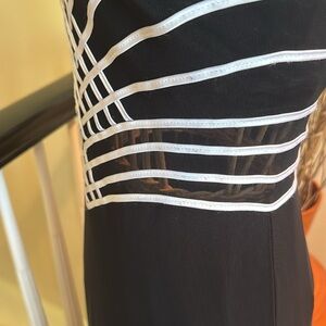 Very classy dress. Has a lining. Look the top has some see thru places. Sexy material has some stretch to it