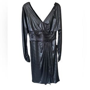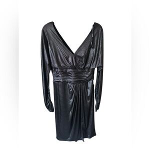 Shine in this elegant black metallic dress, perfect for any special occasion. Its shimmering fabric and sophisticated design make it a standout piece.