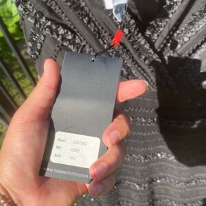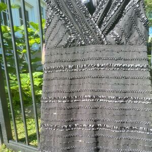Stunning tadashi collection embellished dress. Vneck and cap sleeve. Embellished with ribbon and beading. Perfect for guest of wedding or mother of the bride/groom! Very flattering neckline. Never been worn, with tags attached. Made in the USA. Material has stretch to it. Pit to pit 20.5” length 41.5”.