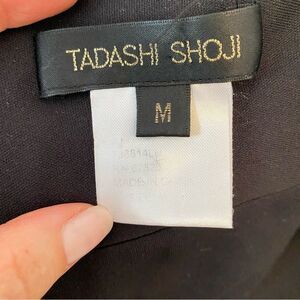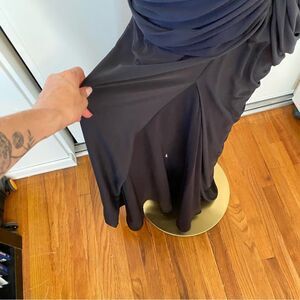 Tadashi Shoji Black Ruched Asymmetrical Floor Length Gown Size Medium