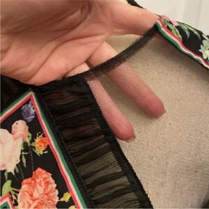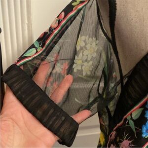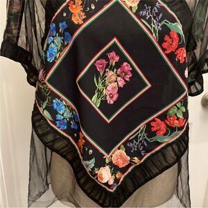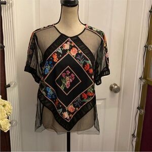 Elegant sheer black top with vibrant floral patterns. Perfect for a stylish and chic look. New, no tags