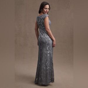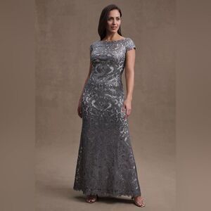 Tadashi Shoji Odette Silver Sequin Lace Boat Neck Formal Cocktail Gown Sz 6 NWT