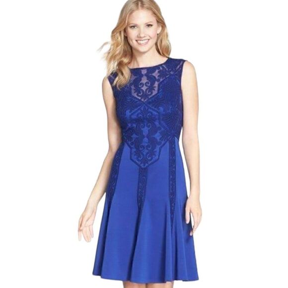 Tadashi Shoji Embroidered Neoprene Fit & Flare Dress Size 4