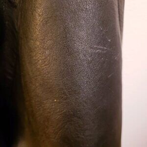 This cool vintage leather is slightly cropped, falling just below your waist! This will look great with your highwaisted jeans or a flowy maxi skirt!