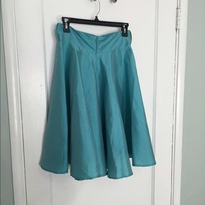 Beautiful taffeta skirt. Picture looks more blue but in person it is more of a teal color (a little green mixed with blue) Very figure flattering. Never been worn. I am selling this because I originally bought it thinking it came with a belt that was pictured with it, but sadly it did not :( Was unable to return it. Not lined but you could add a petticoat underneath. Adorable!