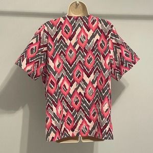 Tafford Pink Grey Aztec Print Medical Scrub Top Medium 100% Cotton