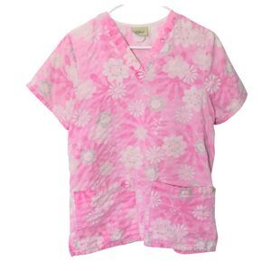 Tafford Scub Top Women Pink Small Floral Pattern & Large Pockets Comfortable Fit